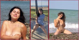 This is a shock! Crazy girl decided to go naked and masturbate in the water park!